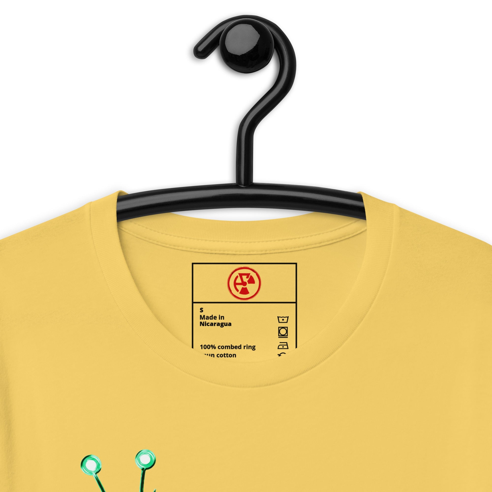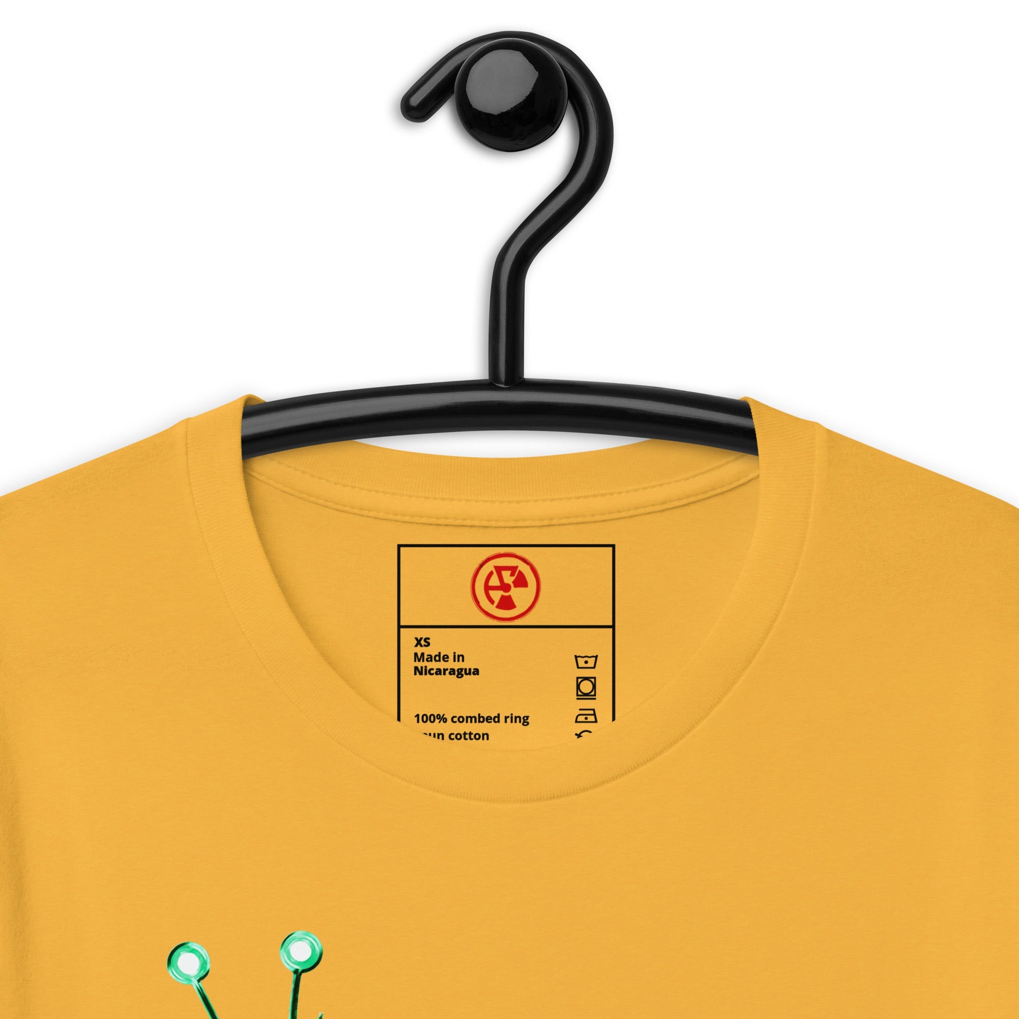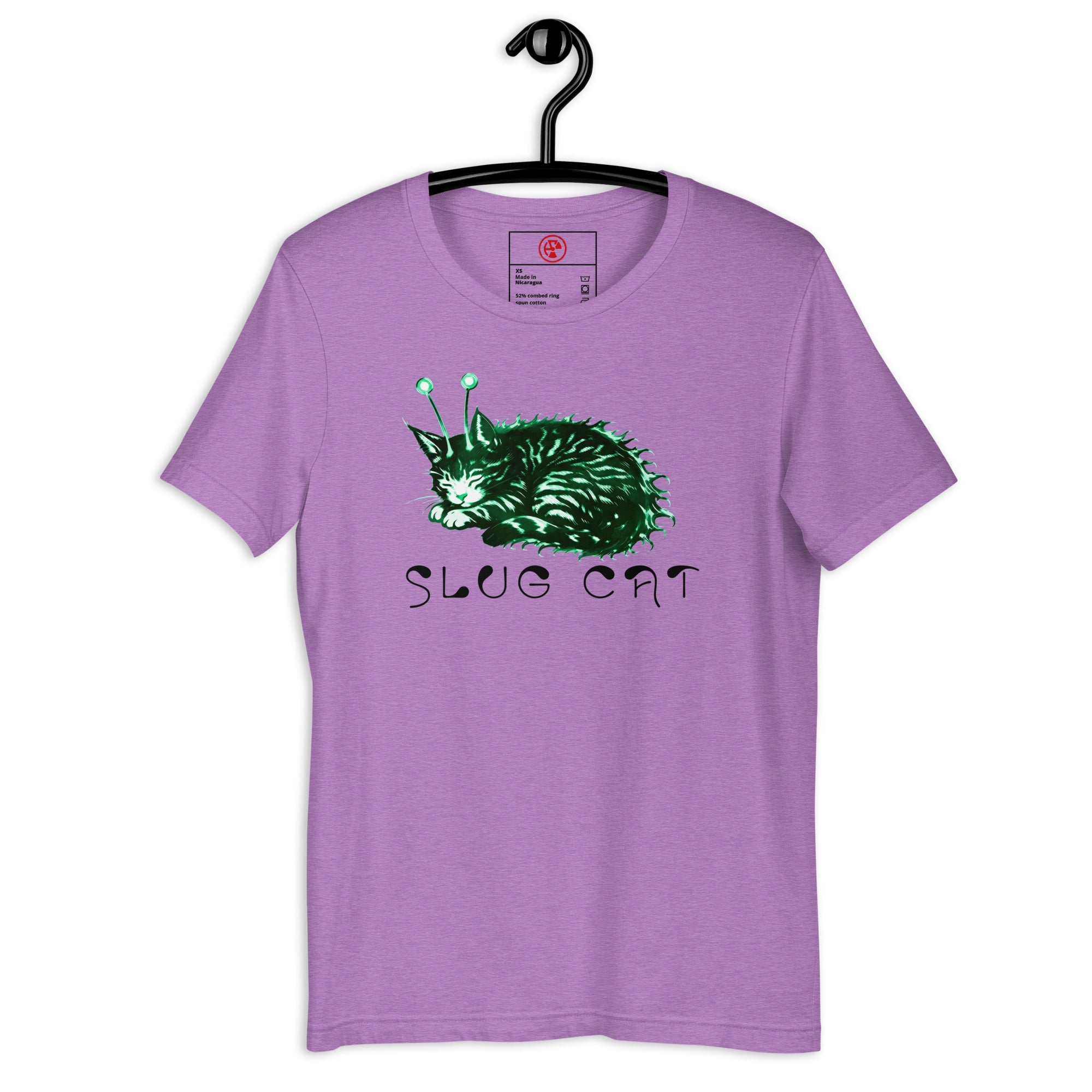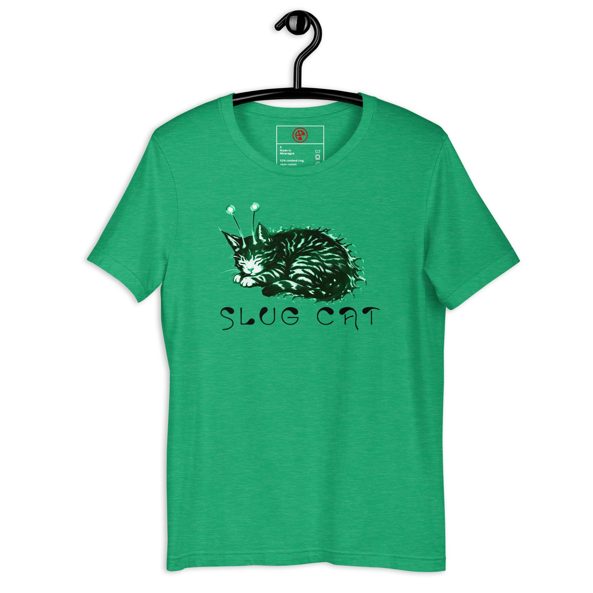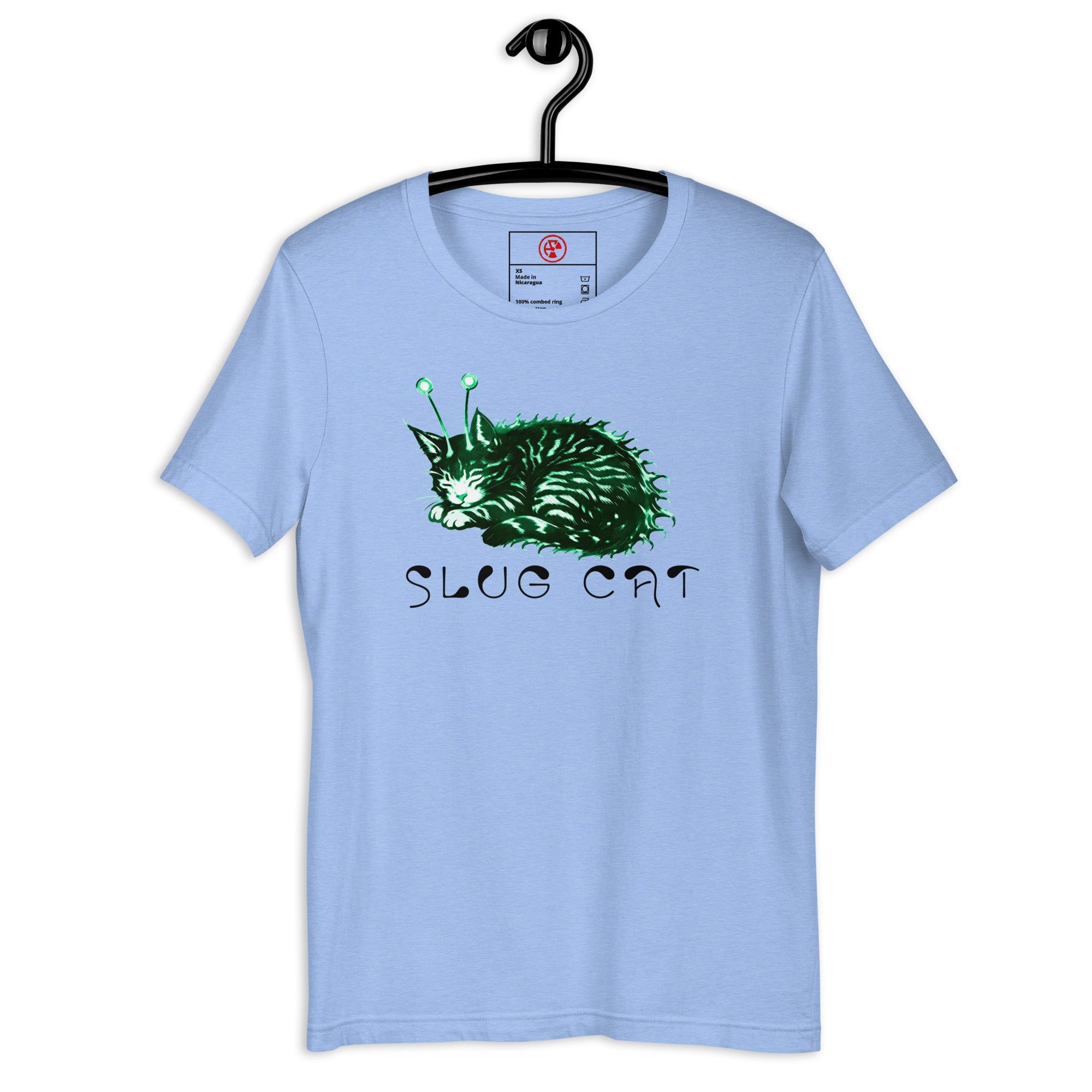 This unisex tee features Slug Cat in her mutated form — gravity-optional, slime-trailing, and radiating the kind of cosmic indifference that most people spend decades in therapy trying to achieve. The Atomic Heart Engine scanned her emotions and found exactly one: mild annoyance at being scanned.