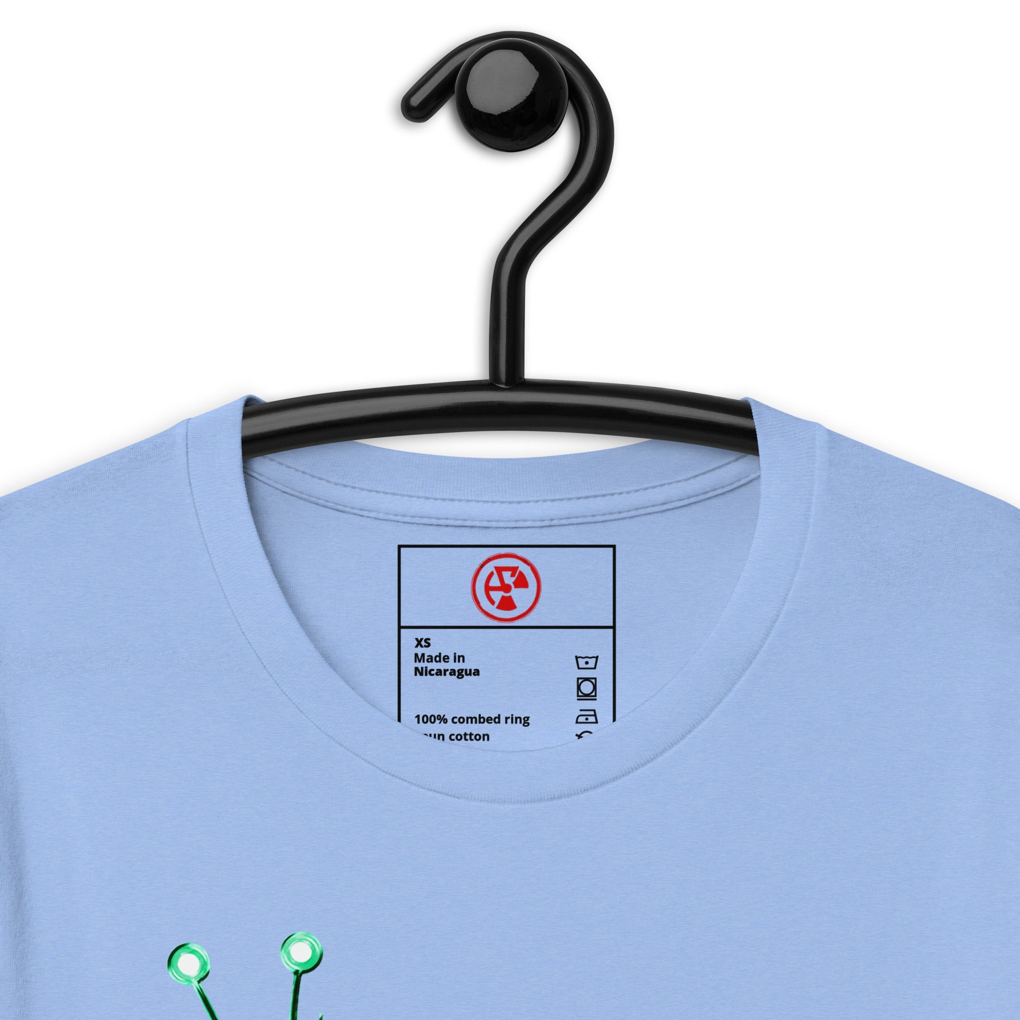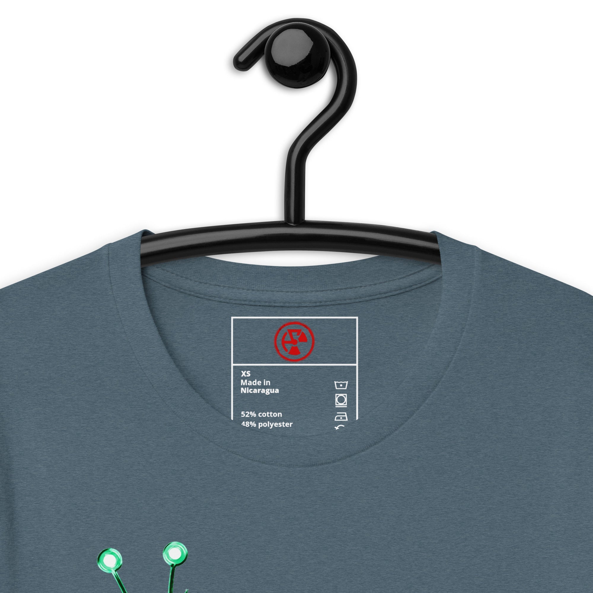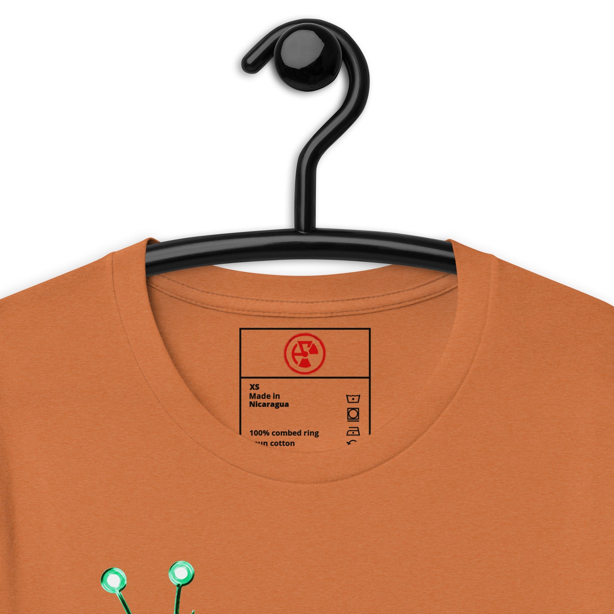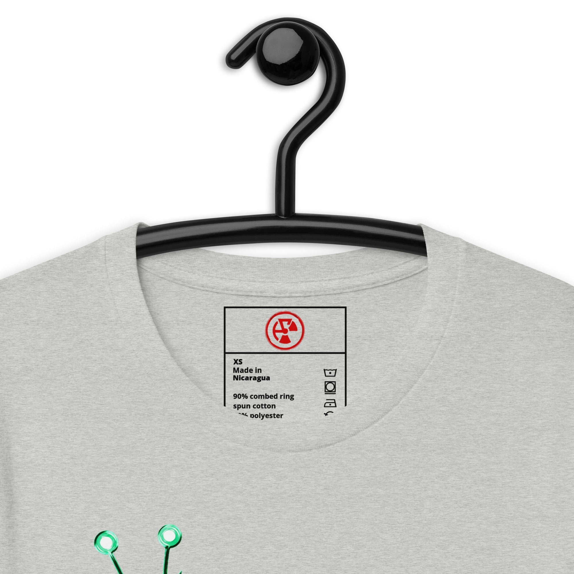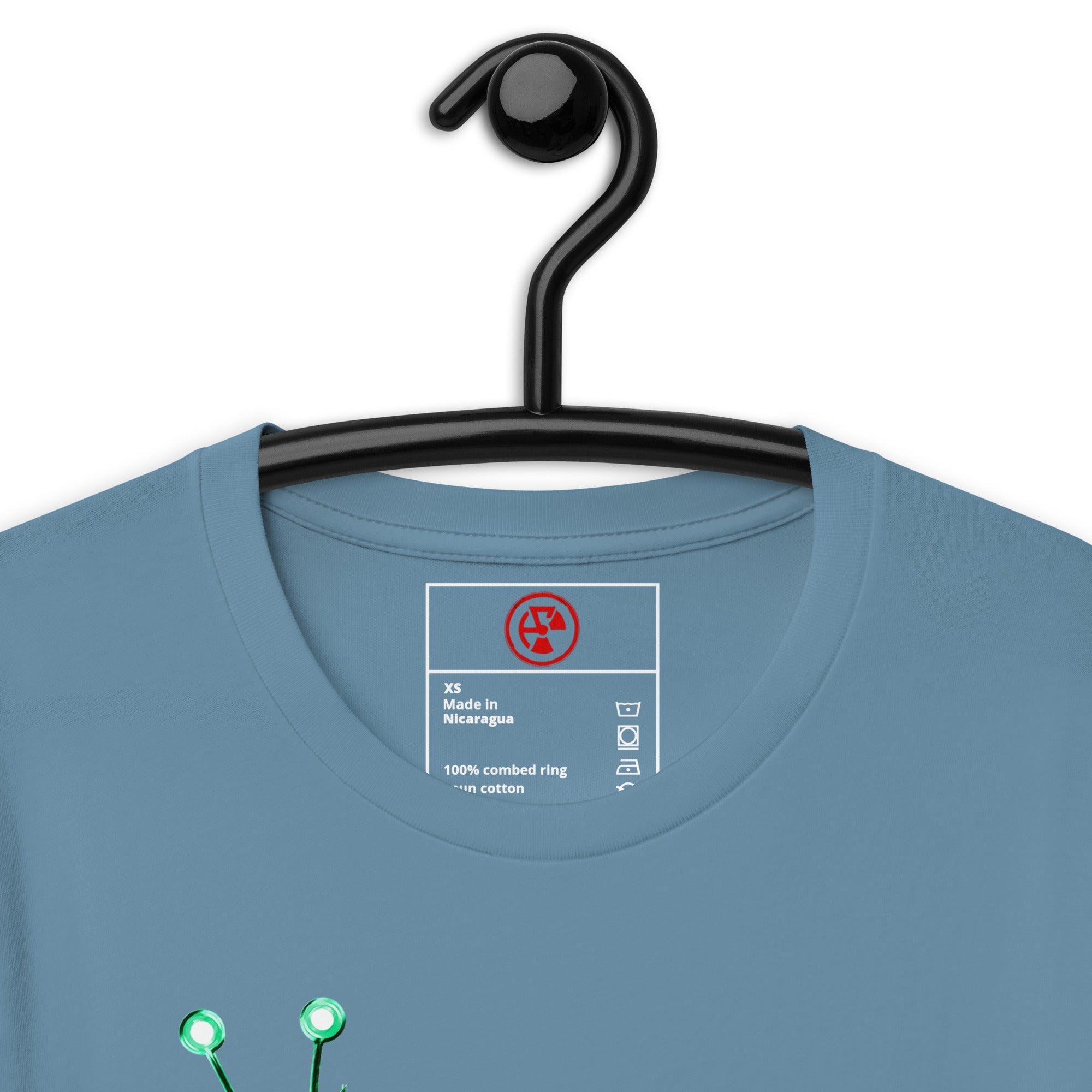 This unisex tee features Slug Cat in her mutated form — gravity-optional, slime-trailing, and radiating the kind of cosmic indifference that most people spend decades in therapy trying to achieve. The Atomic Heart Engine scanned her emotions and found exactly one: mild annoyance at being scanned.